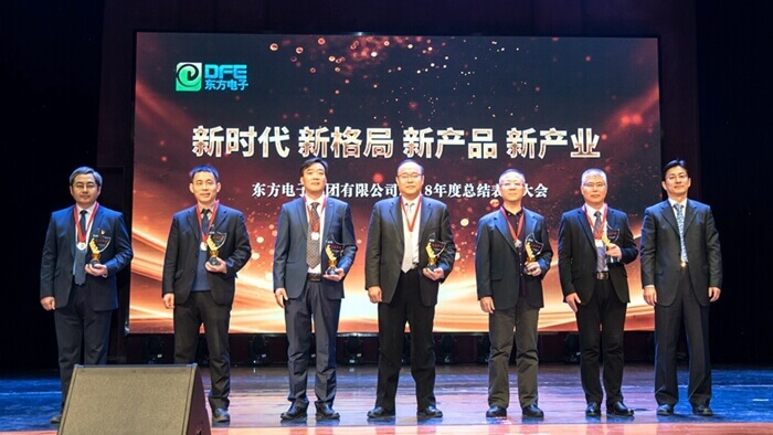 杨总为威思顿、海颐、印度公司、京海、英达康、国网中电等6家先进单位颁奖