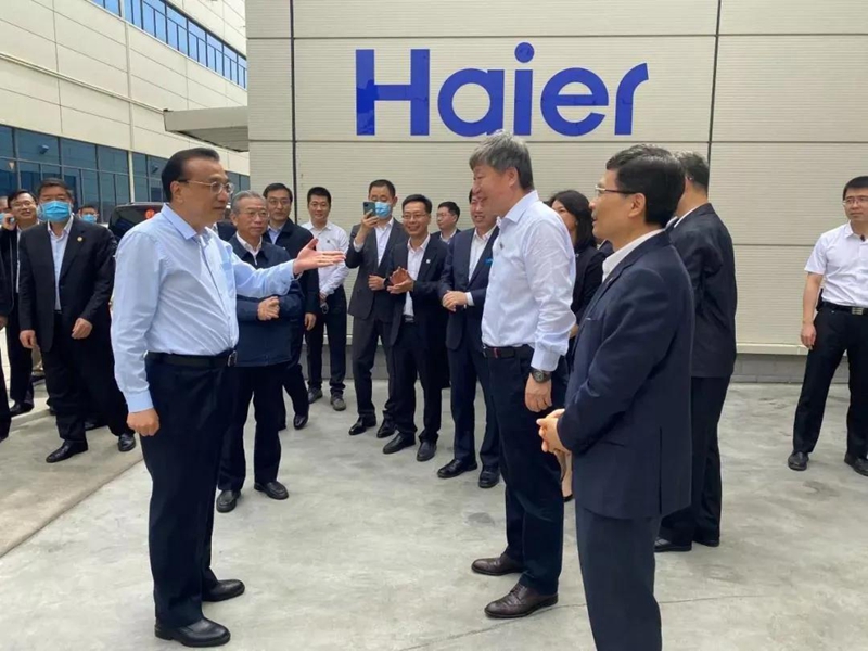 ▲6月2日,李克强总理到海尔视察,听到了海尔工业互联网平台COSMOPLAT的介绍。该平台的综合能源管理部分由江苏五亭龙科技集团有限公司提供。