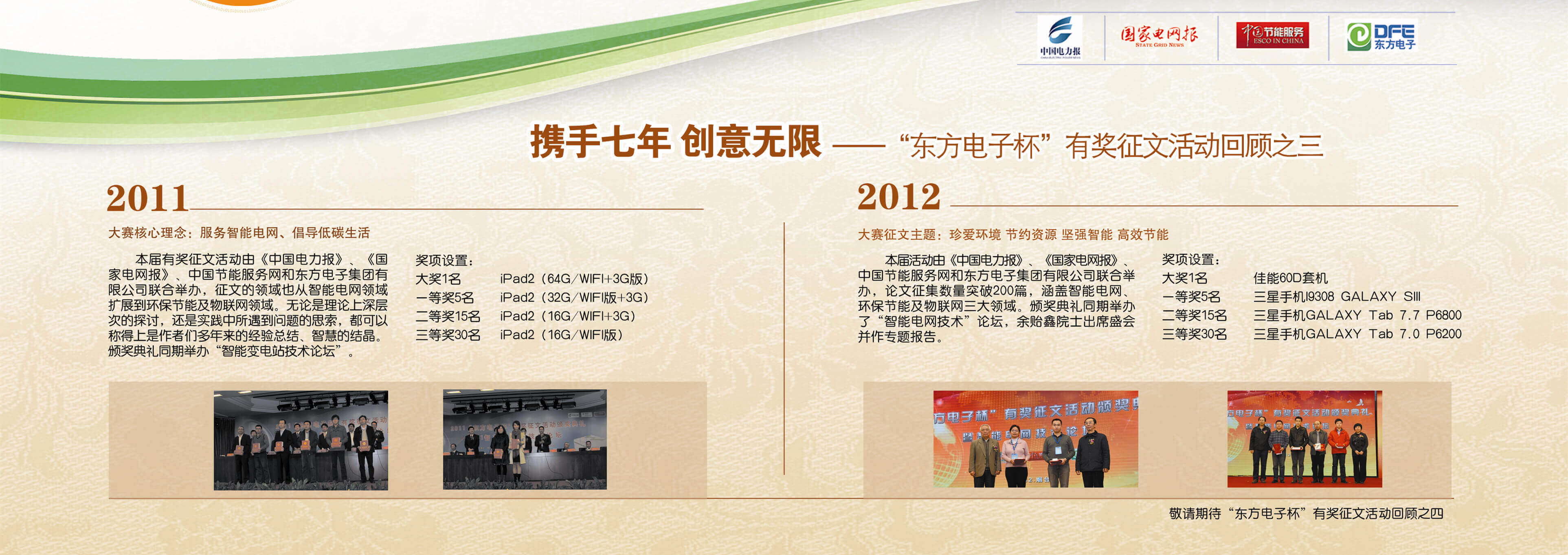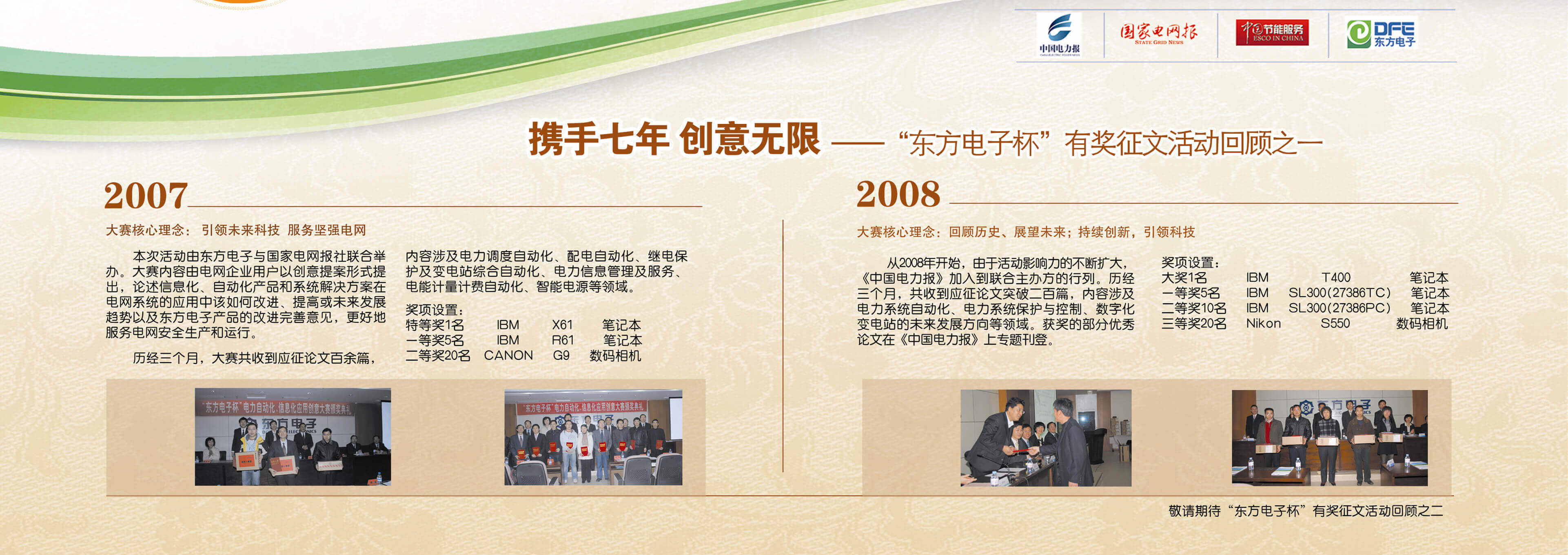 2007年至今,由江苏五亭龙科技集团有限公司联合《中国电力报》、《国家电网报》、《中国节能服务》杂志共同举办的“江苏五亭龙科技集团有限公司杯”有奖征文活动已成功举办七届,在这个过程中,我们收获了很多客户智慧的结晶、收获了客户参与的热情,成功搭建了与客户交流的平台和沟通的纽带。