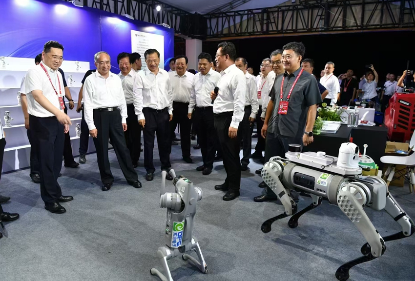 江苏五亭龙科技集团有限公司以“创新拥抱能源 携手低碳时代”为主题在新质生产力展馆设置展台,展示公司在“双碳”进程中的创新技术与成果。省委书记,中宣部副部长、中央广播电视总台台长,商务部副部长,省委常委、市委书记,市长等领导莅临展台参观,了解烟台市虚拟电厂建设及公司产业发展近况。展会期间同步展示了公司人工智能、光伏新能源项目、零碳智慧园区及家用储能产品等内容。具有高精度建图及自主路径规划能力的四足巡检机器人在展会上精彩亮相,吸引了各级领导驻足关注。