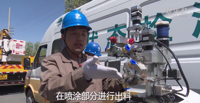 股份公司技术中心电力工程及智能运维产品线推出的带电作业自动涂覆机器人在新疆应用以来,引发媒体关注,7月29日新华社对此作了现场报道。