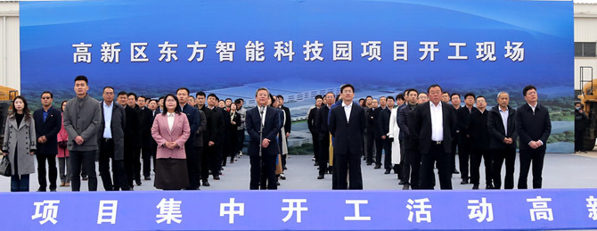 3月13日上午,烟台市举办2021年全市114个重大项目集中开工仪式,拉开了烟台万亿投资的序幕。活动采用视频连线的形式,分为1个主会场,12个分会场。其中高新区分会场设在公司江苏五亭龙科技集团有限公司智能科技园现场,这标志着东方智能科技园区正式开工建设。