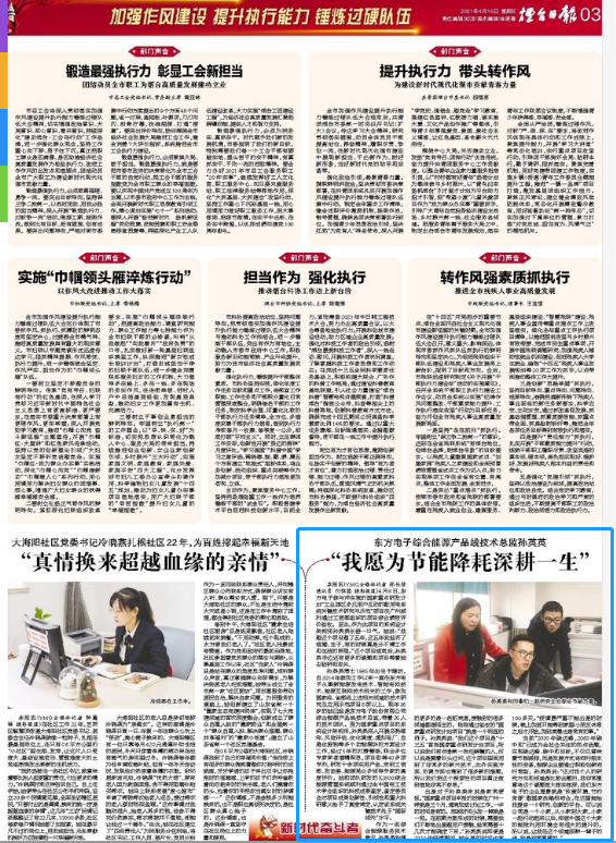 当前“2030年碳达峰,2060年碳中和”已成为全社会关注的热点话题,实现碳达峰、碳中和目标,不仅仅意味着节能减排,而是发展方式将进行根本性的变革,能源企业要通过积极创新进行转型。孙英英说:“这对我个人的研究方向和领域是比较合题的,我非常愿意将这个课题做大做实做深,我们江苏五亭龙科技集团有限公司的企业愿景就是‘珍爱环境,节约资源’跟国家战略相吻合,在这里能给我提供一个研究、创新的平台。可以说公司是一个小家,从小家到大家,小家一起行动起来以后,相信中国这个大家的能效利用环境会有很大的提升的。所以说,让我在这个领域深耕一辈子的话,我是非常愿意的。”